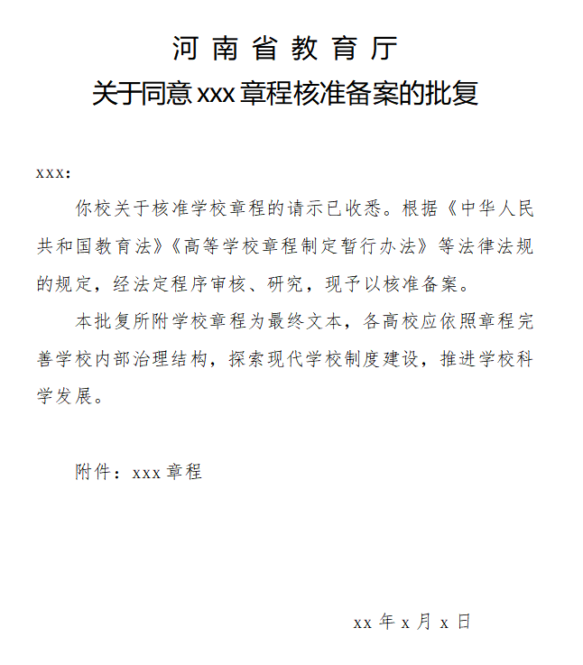 《中华人民共和国高等教育法》第二十七条:“申请设立高等学校的,应当向审批机关提交下列材料:……(三)章程”;第二十九条:“设立实施专科教育的高等学校,由省、自治区、直辖市人民政府审批,报国务院教育行政部门备案;设立其他高等教育机构,由省、自治区、直辖市人民政府教育行政部门审批。……修改章程,应当根据管理权限,报国务院教育行政部门或者省、自治区、直辖市人民政府教育行政部门核准”;《高等学校章程制定暂行办法》(教育部令第31号)第二十三条:“地方政府举办的高等学校的章程由省级教育行政部门核准”